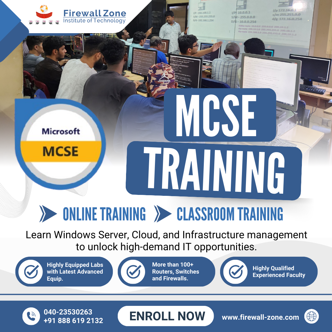 MCSE Training In Hyderabad at Firewall Zone, the MCSE Windows 2025 Training Course enables students to plan, deploy, and manage Windows Server 2025 based identity, virtualization, storage, and networking systems. In addition, the course is still preparatory to exams 413 and 414, which are required for an official Microsoft MCSE: Server Infrastructure certification.